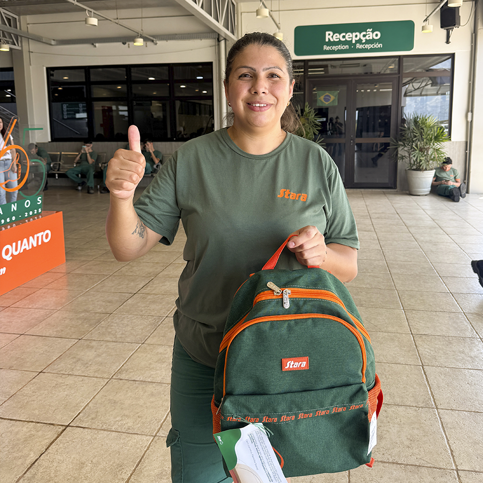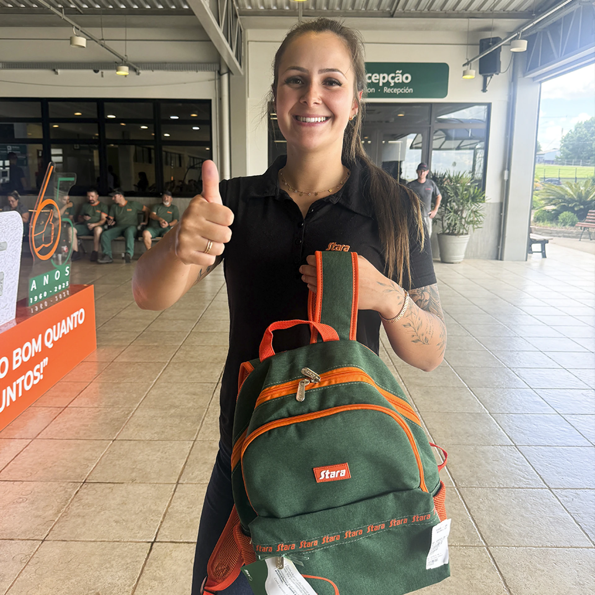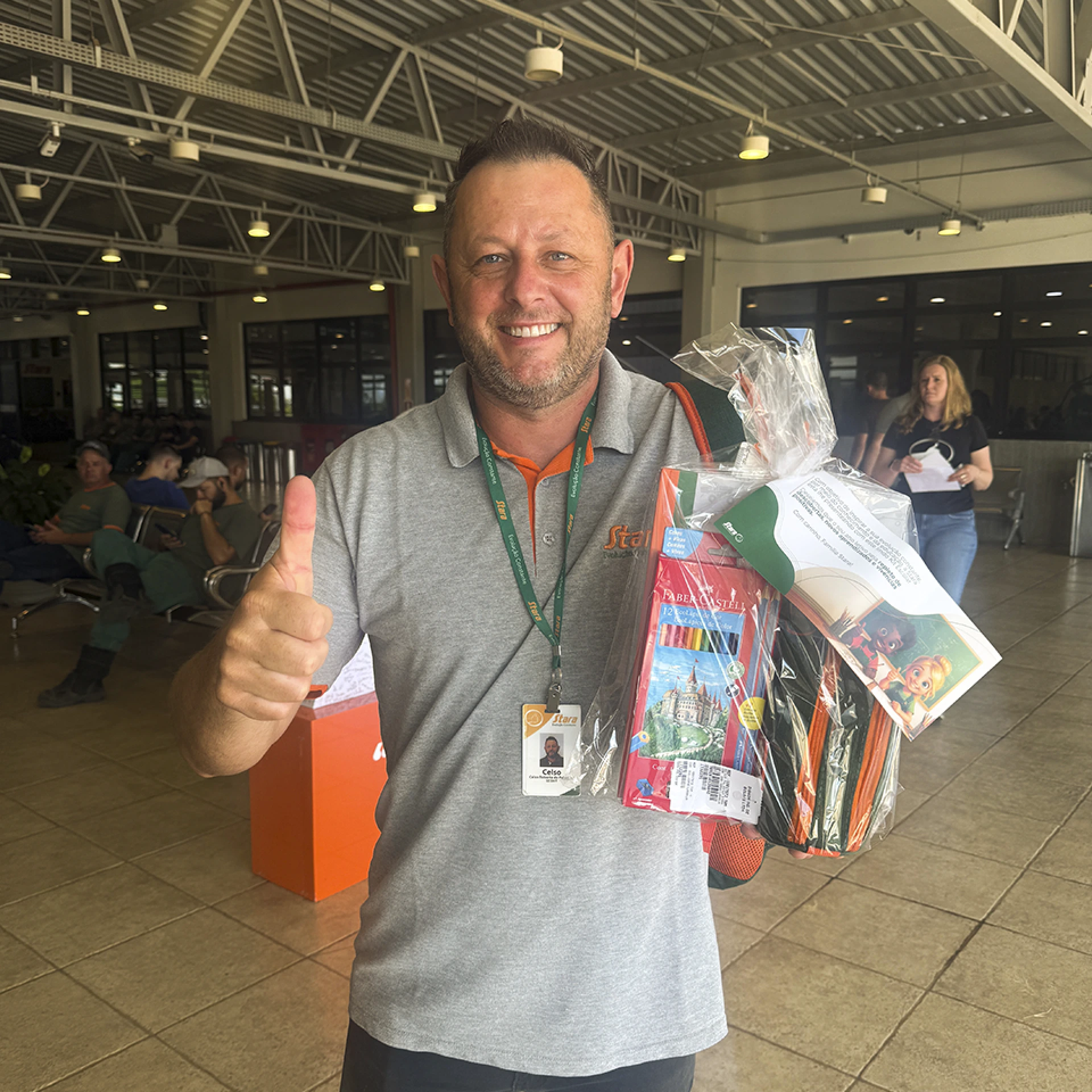 A entrega dos kits escolares é sempre recebida com entusiasmo pelos colaboradores da Stara, que reconhecem o impacto positivo do incentivo aos estudos e evidenciam o apoio no orçamento familiar.